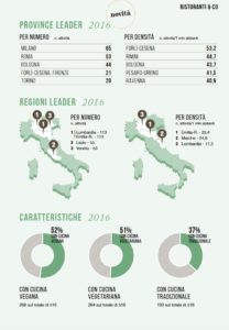 Le regioni leader per numero sono la Toscana con 277 attività, Emilia Romagna con 191 e Marche con 162. Per densità, invece, in testa c’è l’Umbria con 108,8, le Marche con 104,9 e la Toscana con 74,0. In questo caso notiamo come tutte queste attività si concentrano nel cuore dell’Italia. La domanda che ci siamo fatti è perché il resto d’Italia non coglie questa opportunità. La capacità economica del turismo è molto alta e se facessimo una proiezione con le visite degli stranieri questo potenziale diventa altissimo. Cosa ci ferma? Cosa manca? Mezzi di trasporto, mezzi di comunicazione, burocrazia, organizzazione, cultura, formazione. Eppure siamo certi di quanto la terra abbia da dare. Cosa ne pensate voi?
