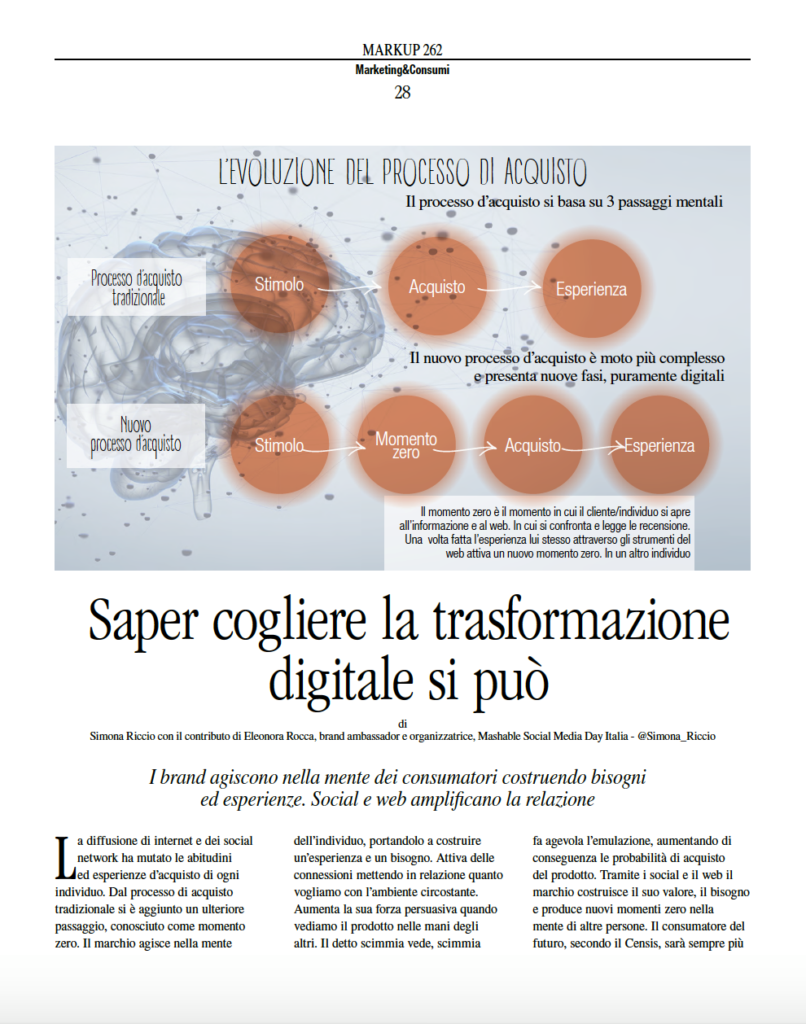 Da un processo di acquisto tradizionale dove l’esperienza d’acquisto dell’individuo si suddivideva in 3 fasi, stimolo, scaffale ed esperienza del prodotto, si è aggiunto un passaggio importantissimo ed è quello dello zero moment: il momento in cui il potenziale cliente costruisce le sue convinzioni e quello in cui il processo d’acquisto inizia. Perché dico che è fondamentale essere sul web a tutti gli imprenditori? Perché il momento Zero, che anche Google sostiene essere il passaggio più importante, avviene sul web, avviene in tempo reale, è di tipo emozionale in quanto la ricerca nasce da un bisogno e il potenziale cliente fa un investimento emotivo per soddisfare il proprio bisogno e in questo momento la conversazione non è unidirezionale, ma si trovano a conversare tutti coloro che cercano la stessa esperienza, quindi: amici, estranei, siti, esperti, pubblicitari ognuno con i suoi assunti, praticamente il web che è formato da tutti noi che insieme creiamo quella “conversazione” che ci porta a decidere di acquistare un prodotto o un altro.