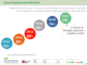 Da questa slide si evince il tasso di penetrazione del bio dal 2012 ad oggi, come potete anche voi notare, è in netta crescita.