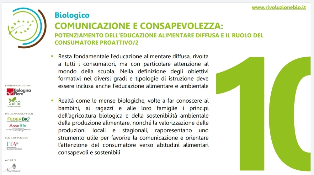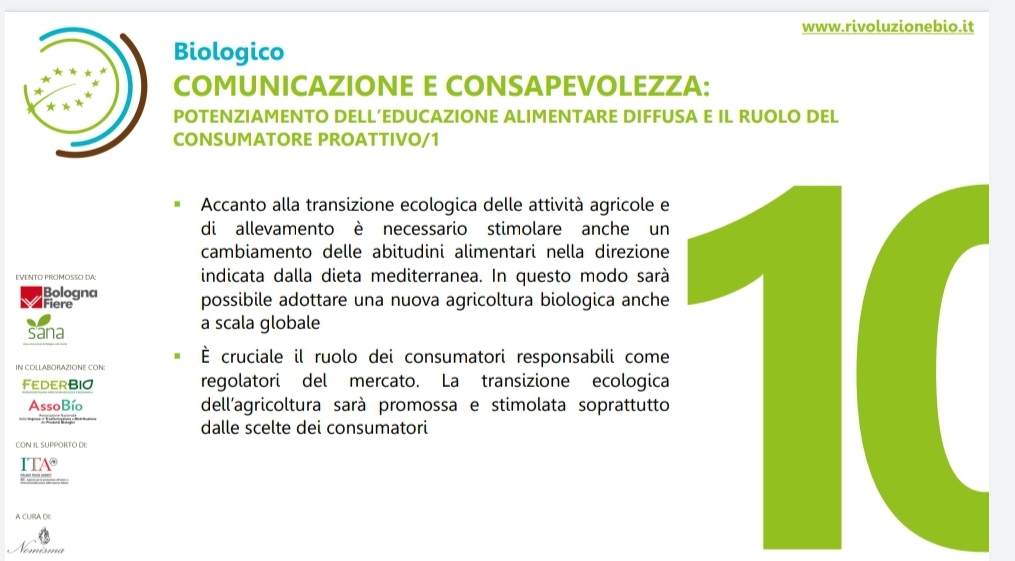 Quest’anno, grazie all’invito personale di Nomisma, società indipendente che realizza attività di ricerca e consulenza economica per imprese, associazioni e pubbliche amministrazioni, a livello nazionale e internazionale, ho il piacere di partecipare attivamente all’importante evento “Rivoluzione Bio” che si svolgerà a Bologna e si aprirà il 5 settembre con una giornata di lavori – articolata in 4 sessioni tematiche – presso il Palazzo dei Congressi (BolognaFiere). Il 6 settembre seguirà una Tavola Rotonda, evento di apertura di SANA 2019.