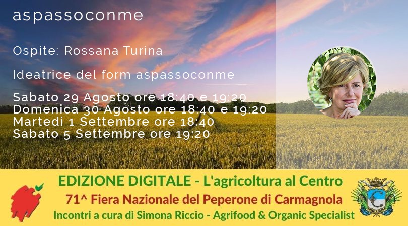 Ho raggiunto amici oltreoceano, ho fatto chiacchierate virtuali su temi che rappresentano le mie passioni: il territorio, il cibo, le persone. Ora, questo mio “raccontare” è approdato alla 71esima Fiera del peperone di Carmagnola, dove vi porterò a conoscere e scoprire protagonisti e luoghi davvero interessanti.Ne parlerò nelle dirette di Simona Riccio, che a questo mio format si è appassionata e ci ha creduto da subito”.